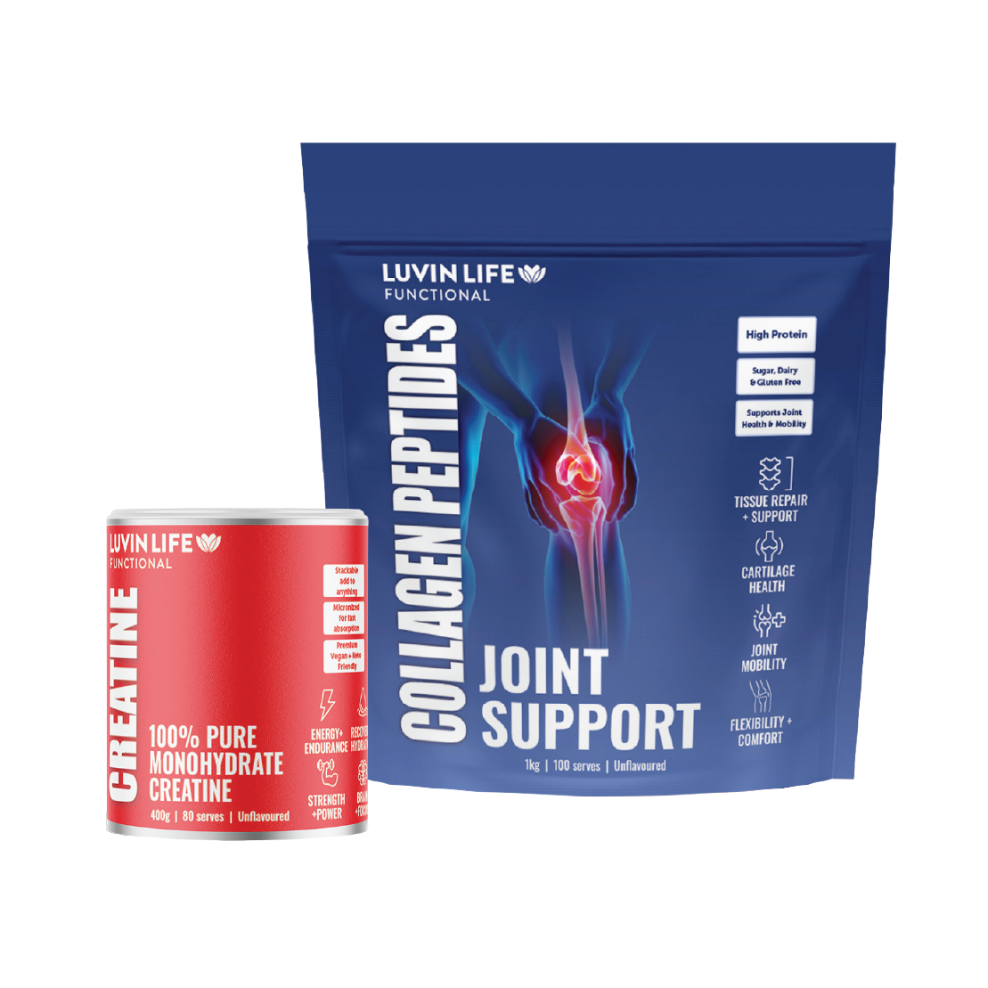 Luvin Life Joint Support Collagen Powder Australia - 1kg + Creatine - 400g performance bundle.