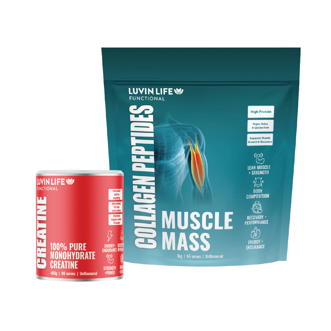 Luvin Life Muscle Mass Collagen Powder Australia - 1kg + Creatine - 400g performance bundle.